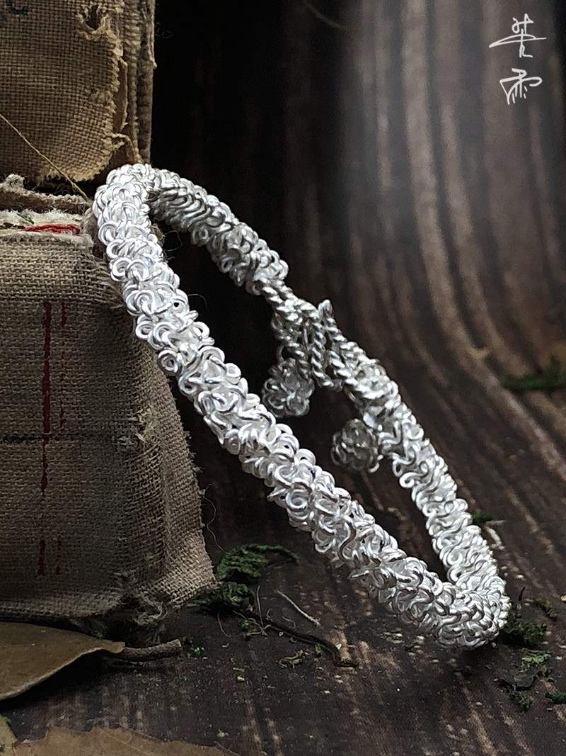 正品苦雨 银手镯999纯银女古法手链ins小众设计简约手饰复古足银热门设计联盟服务商