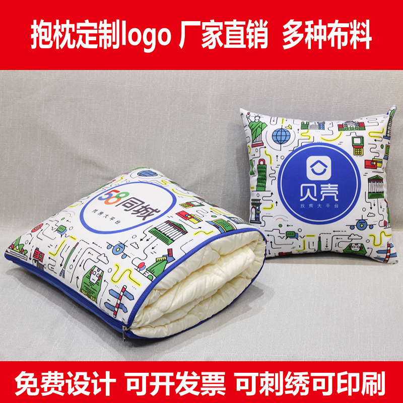 纯色毛绒抱枕照片企业刺绣印刷logo定做抱枕被定制被子两用抱枕被热门设计联盟服务商