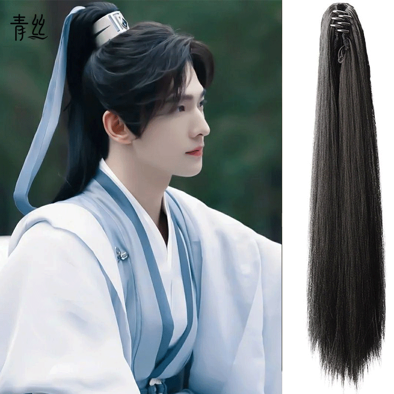 古风假发女抓夹式马尾长直发汉服男士古装侠客发髻影视高马尾造型热门设计联盟服务商