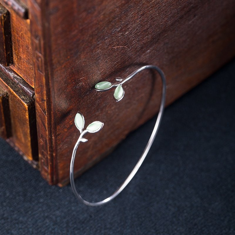 正品手镯女纯银925开口小众原创设计猫眼石文艺学生简约年轻款银热门设计联盟服务商