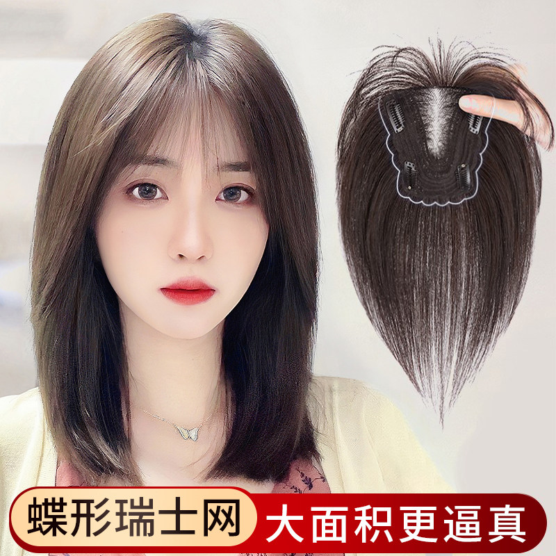 蝶形瑞士网假发片女夏头顶真发全真人发补发蓬松增发量遮白发假发